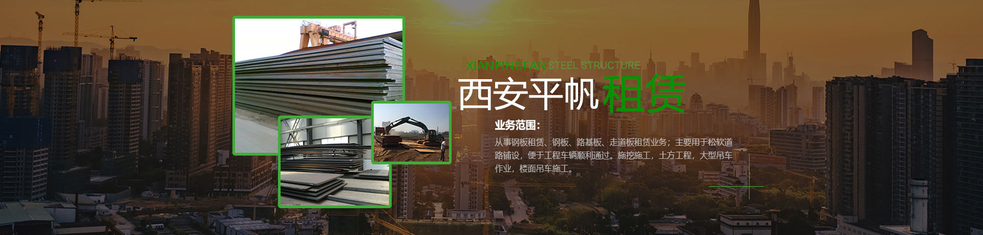 西安平帆建筑工程機(jī)械租賃有限公司位于十八朝古都陜西省西安市,公司專(zhuān)注鋼板租賃領(lǐng)域,致力于成為西北地區(qū)領(lǐng)先的鋼板租賃企業(yè),經(jīng)營(yíng)范圍涵蓋建筑材料銷(xiāo)售、加工及租賃,鋼材銷(xiāo)售及租賃等;運(yùn)營(yíng)范圍以西安為中心涵蓋整個(gè)西北五省。
